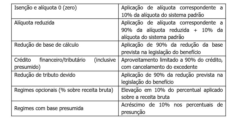 A Lei também preserva hipóteses relevantes em que a redução não se aplica, incluindo, por exemplo, imunidades constitucionais, benefícios associados à Zona Franca de Manaus/áreas de livre comércio, alíquotas zero da Cesta Básica Nacional de Alimentos e benefícios de programas como “Minha Casa, Minha Vida” e Prouni, além de outras exceções listadas no próprio art. 4º, §8º.